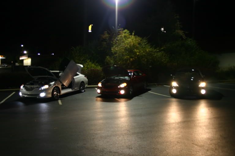 After picking up the wheels (thanks Chris!!) I headed to Lexington and met up with Michael and his Arctic Frost Project. I also met Jeremy who has a screen name I failed to remember. (Give me a few more hours and it'll come to me!) We had three Gen2s in the lot. My red and Jeremy's black seemd to disappear in the dark. Michael's pearl paint just lights up at night. (Kind of makes me wish I had selected that color.) Here are a couple shots for what they're worth.
