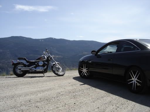 damn dude, both the bike and the car look sexy as hell! those wheels wouldnt look good on any other color car but on yours they look awsome!
